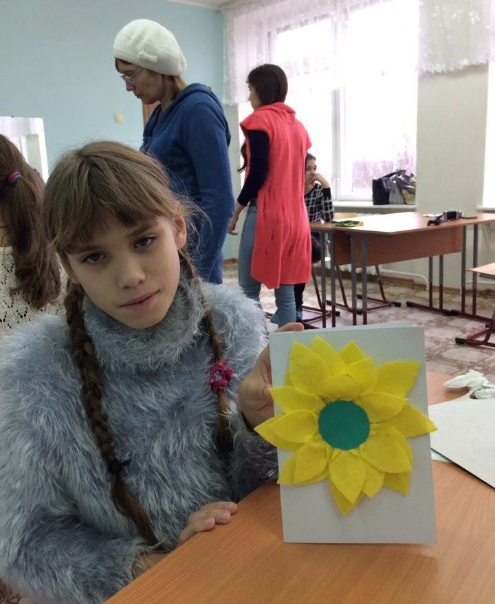 Опубликовано: 31.10.201731 октября учащиеся 5А класса с классным руководителем Муллахметовой А.Ф. посетили МАУ ДО «Детско-юношеский центр № 14» согласно плану осенних каникул. Учащиеся целенаправленно направились в мастерскую добрых дел. Сегодня здесь прошел мастер-класс «Солнечные цветы». В результате, во главе с мастером своего дела, дети научились делать поздравительную открытку под названием «Солнечные цветы». Открытка - это элемент, с помощью которого мы стараемся передать человеку свои чувства, своё настроение, праздничное состояние. Иногда от души сделанная открытка становится намного дороже самых ценных подарков. Дети остались очень довольными и в хорошем настроением пошли домой.