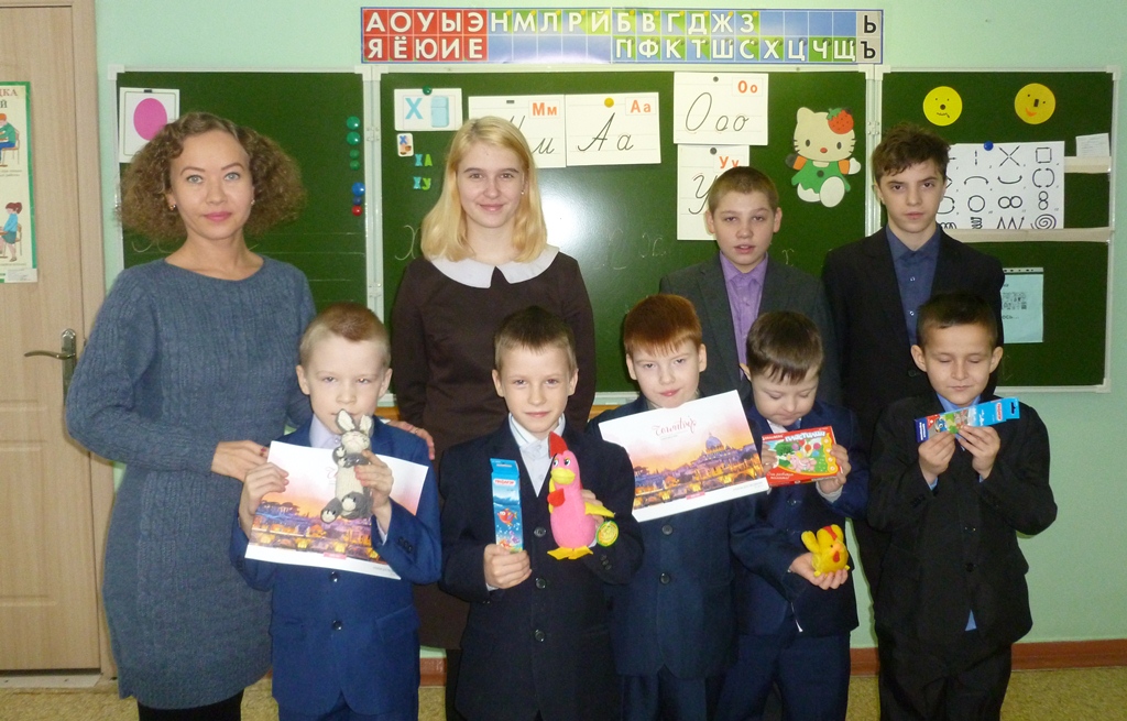 Опубликовано: 06.12.20176 декабря по доброй традиции в рамках декады инвалидов учащиеся 7б класса под руководством педагога Акбировой Г.Т. оказали помощь ученикам 1 класса Набережночелнинской школы №69, подарив им школьные принадлежности и мягкие игрушки.