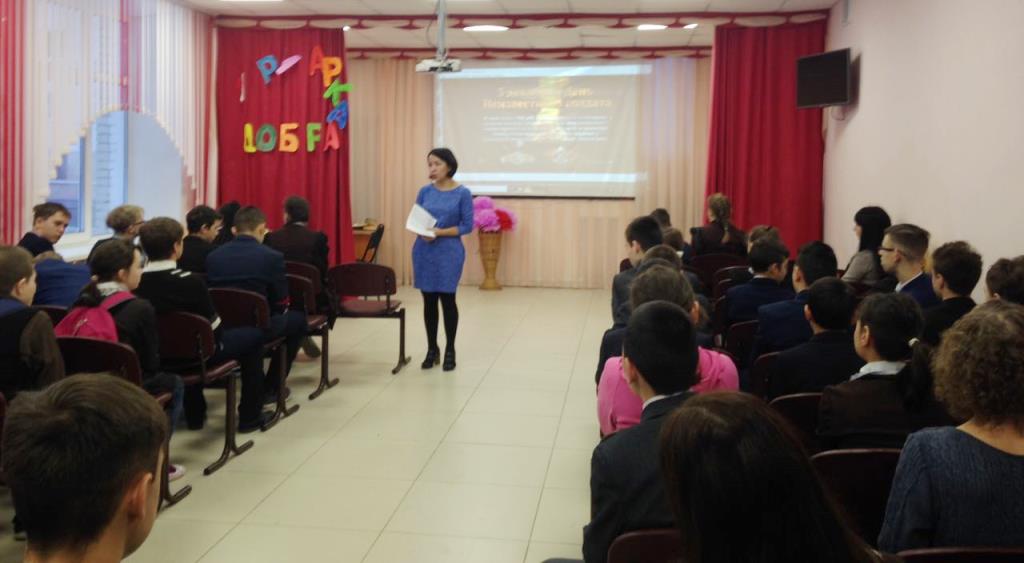 5.12. учителем истории Тимургалиевой Д.А. для учащихся 6-9 классов был проведён классный час на данную тему. Ученики с интересом слушали историю этой памятной даты, посмотрели короткий фильм, где рассказывается о героях Советского Союза и РФ.