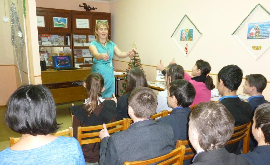 Опубликовано: 28.12.2017Согласно плану воспитательной работы с учащимися на зимние каникулы, 28.12.2017г. ученики 7а, 7б классов под руководством педагогов Акбировой Г.Т. и Тимургалиевой Д.А. посетили городскую библиотеку №23 (пос. ЗЯБ д.18/38). Работники библиотеки провели для детей познавательно-игровой час «Новогодние странички». Учащиеся активно участвовали в конкурсах, остались довольны проведённым мероприятием и небольшими сладкими подарками.