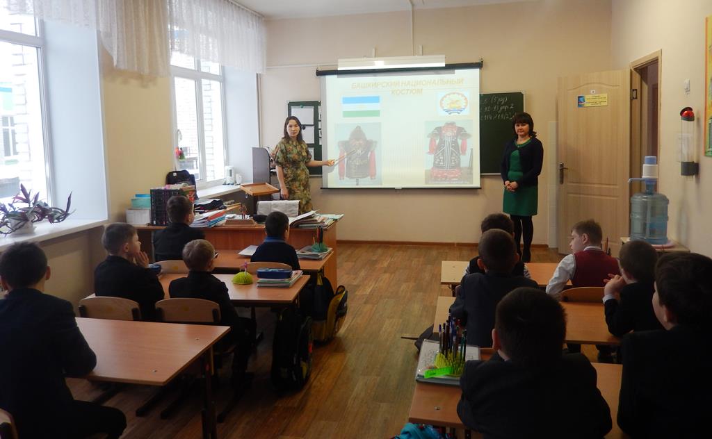 Опубликовано: 06.02.2018Согласно плану мероприятий, посвященных Международному дню родного языка учителями начальных классов Валиевой Р.Р. и Шайхутдиновой Э.Ф. был проведен тематический классный час на тему «Костюмы народов Поволжья». Учителя познакомили учащихся с национальными костюмами народов, населяющих территорию нашей республики, их обычаями, традициями.