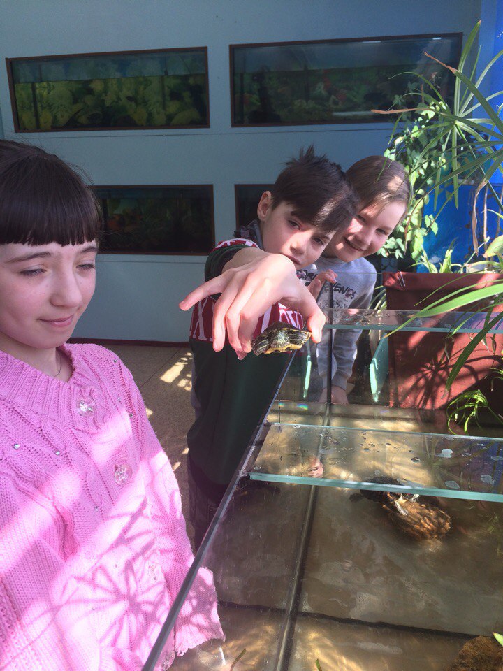 Опубликовано: 30.03.2018Сегодня, 30.03.18 г учащиеся 5а и б классов по плану мероприятий весенних каникул, сходили в ДЭБЦ 4. Дети посетили выставку творческих работ учащихся ДЭБЦ 4 и были на экскурсии в живом уголке. Экскурсия помогла ребятам познакомиться с миром животных, которых можно содержать в уголках живой природы и в домашних условиях. Общение с животными обогащает и расширяет знания ребят, формирует у них любовь к братьям нашим меньшим. Дети получили большое удовольствие.