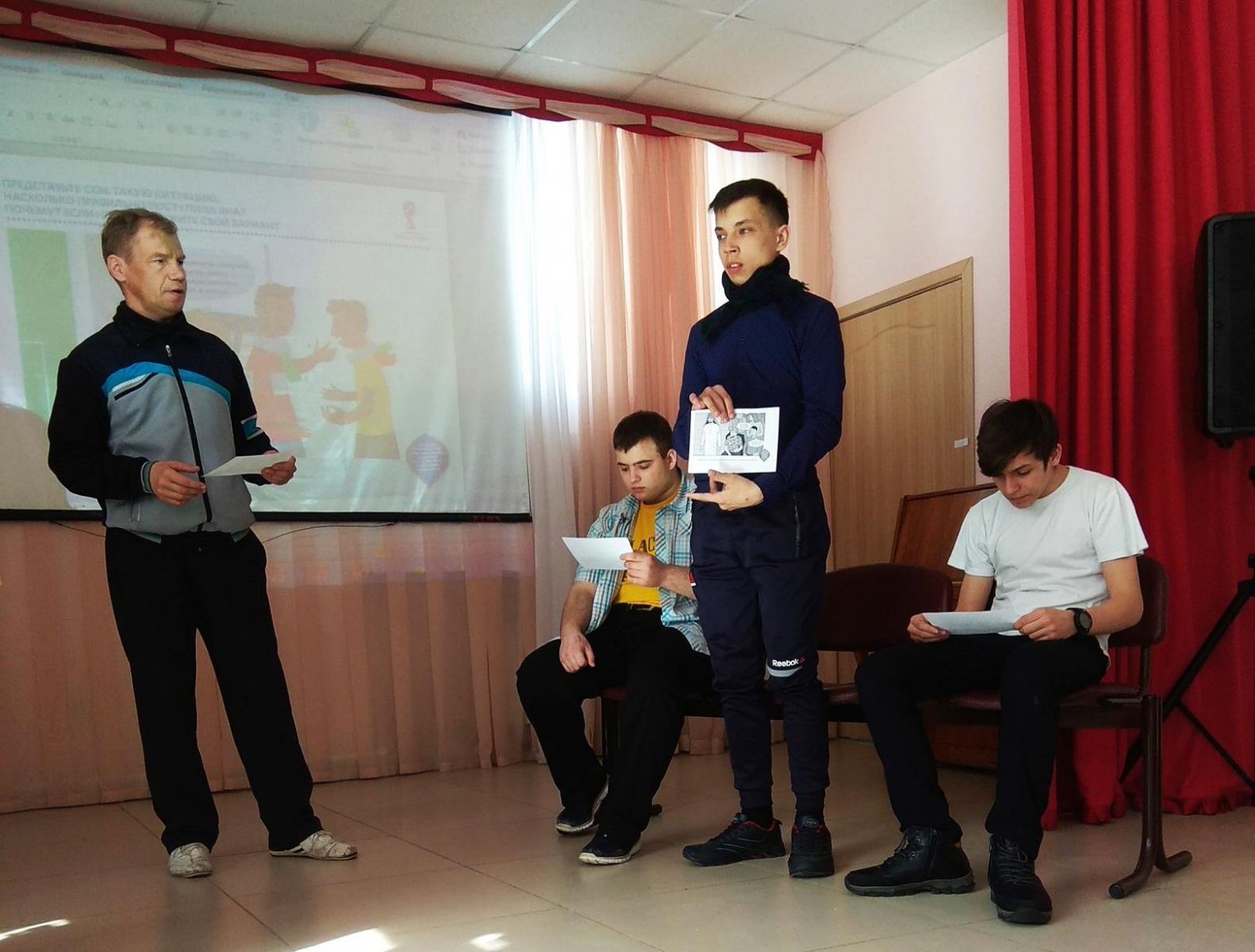 Руководитель занятия Татаркин Михаил, как учитель-педагог в стиле обучающего семинара-практикума для обучающихся детей с ограниченными возможностями здоровья старших классов, предоставил полный объем информации в мультимедийном формате с наглядным материалом, используя карточки и моделированием различных ситуаций, обучил детей уважению и толерантному отношению к международным национальностям мира.