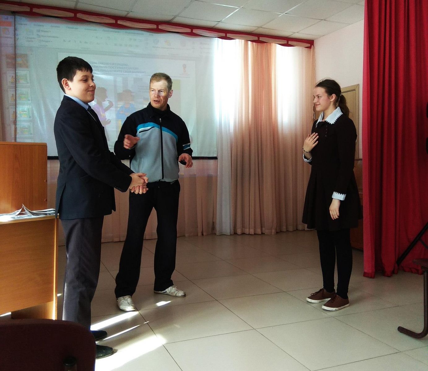 Учащиеся старших классов с таким интересом участвовали в инсталляции ситуаций, увлекательное занятие охватило и буквально интриговало, как же объяснить жестами и сигналами тела о будущем действии и толерантном отношении к людям, требующим помощь прямо сейчас и сиюминутное решение проблемы.