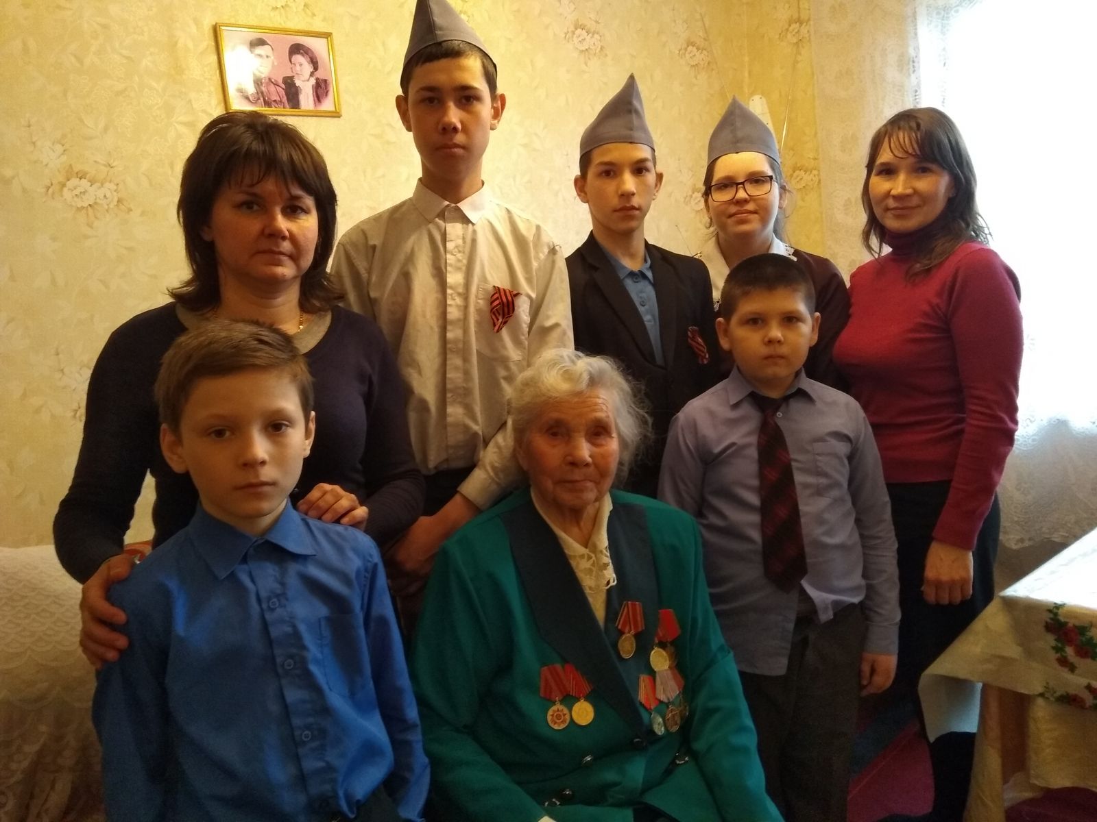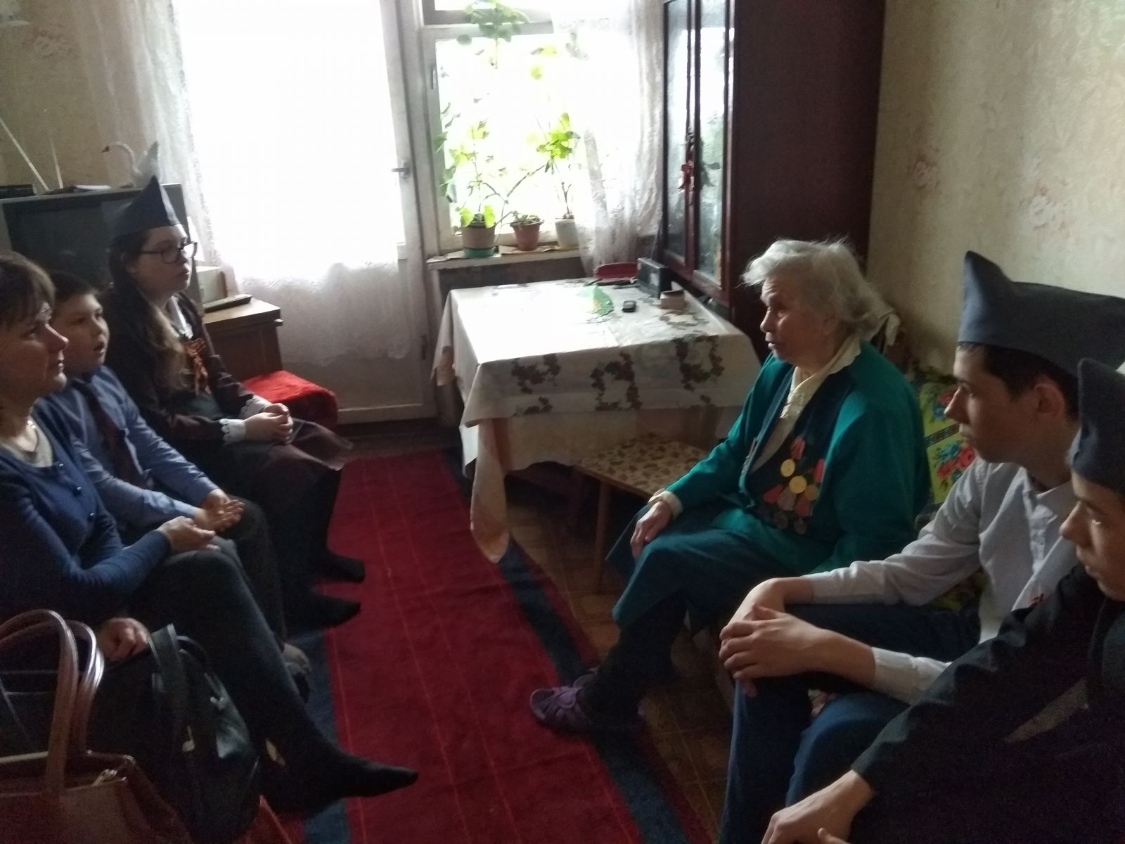 Опубликовано: 25.04.2018В рамках Всероссийской добровольческой акции «Весенняя неделя добра» в Республике Татарстан 25.04.18 участники Тимуровского движения “Дружба” совместно с учениками 2 класса посетили ветерана тыла ВОВ Кулакову Александру Андреевну. Когда Александре Андреевне исполнилось 16 лет, она уехала учиться в село Вятские поляны в фабрично- заводское училище, где обучалась профессии токаря на станке. Перед самой войной она должна была получить свидетельство об окончании училища, но документ не был выдан в связи с началом ВОВ. Когда началась война, всех выпускников училища направили на военный завод, где выпускали револьверные станки. Выпускники точили затворы к автомату ППШ (пистолет, пулемёт, шпагина). Затворки, которые изготавливались, отправлялись на фронт. Работали по 12 часов в сутки без выходных на протяжении всей войны.
