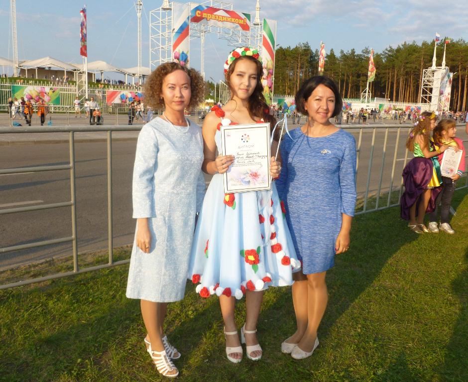 Опубликовано: 30.08.201830 августа 2018 года ученица 5А класса Зыбина Т. под руководством Ветлугиной А.С. и Кашаповой А.Н. стала дипломантом городского фестиваля "Акварель - 2018" в номинации "Лучший маскарадный костюм", а ученица 8А класса Хузяхметова Р. под руководством педагогов Акбировой Г.Т. и Тимургалиевой Д.А. стала дипломантом в номинации "Королева цветов".