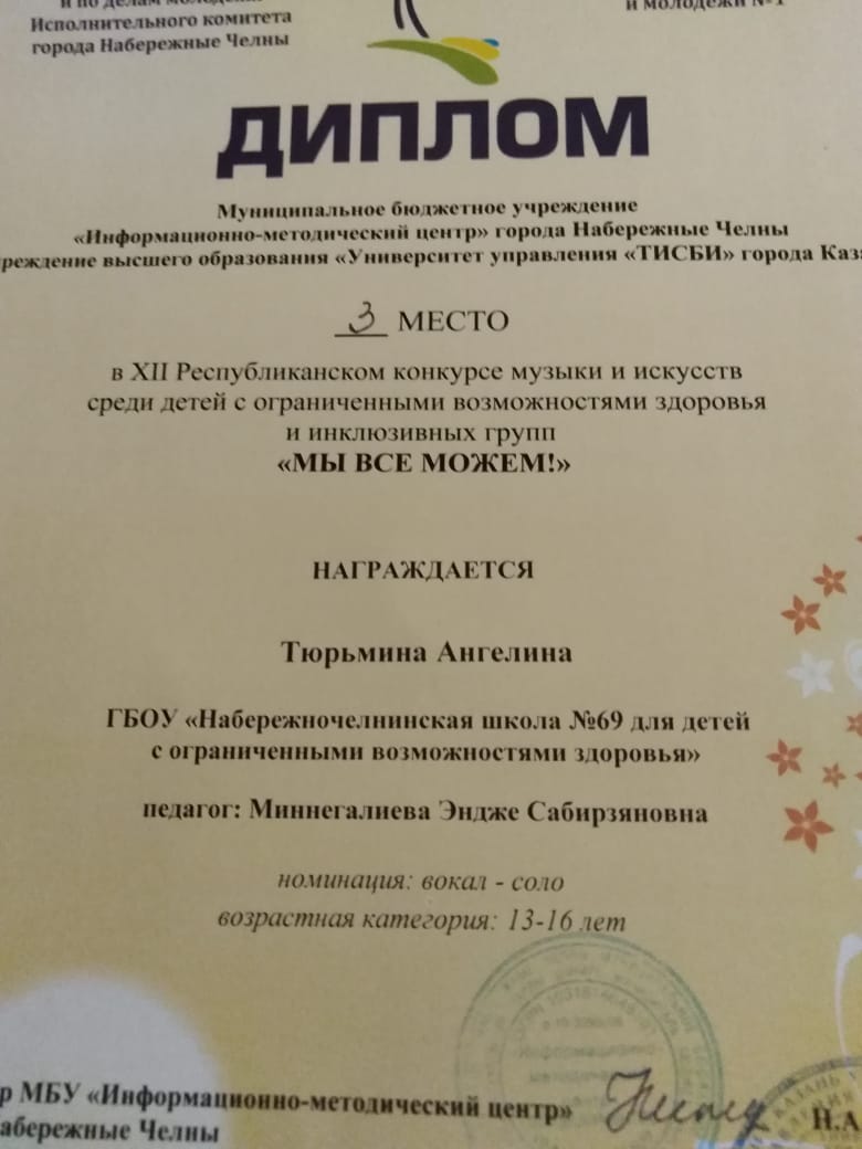 государственное бюджетное общеобразовательное учреждение «Набережночелнинская школа №69 для детей с ограниченными возможностями здоровья» / «Сәламәтлек мөмкинлекләре чикләнгән балалар өчен 69нче Яр Чаллы мәктәбе» дәүләт бюджет гомуми белем учреждениесе