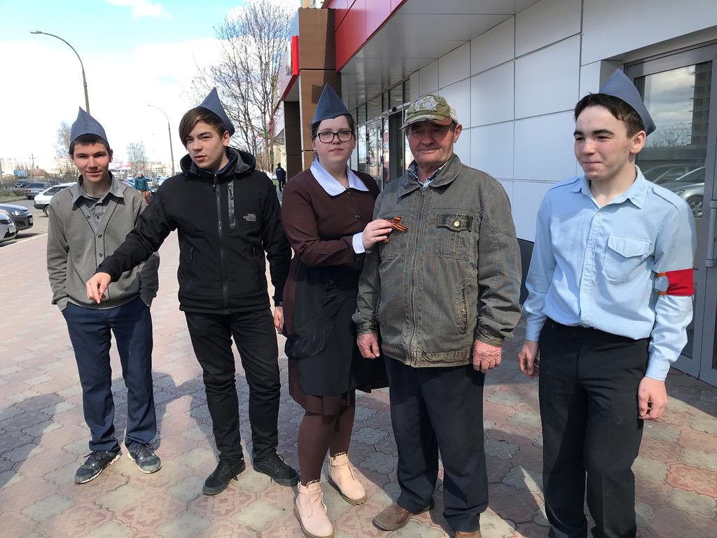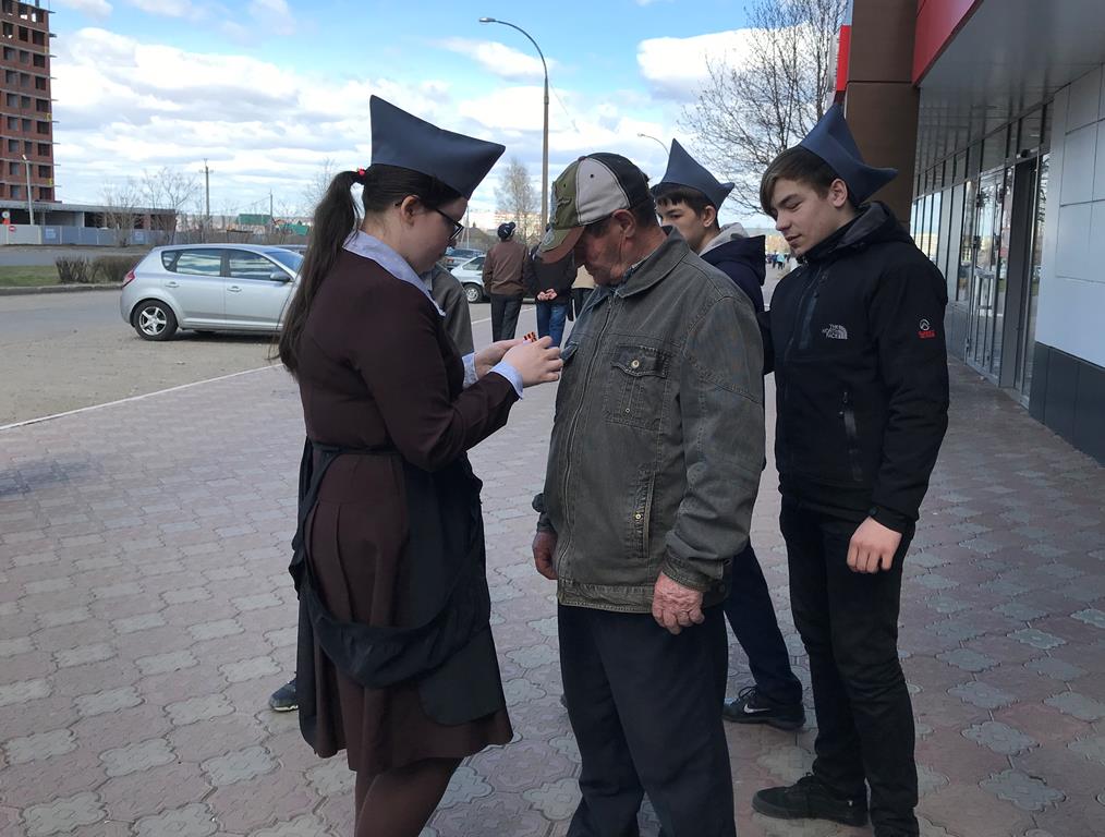 Опубликовано: 25.04.201925.04.2019 Тимуровский отряд «Дружба» под руководством Гильфановой Ю.Р., Галялтдиново Г.Ф. провели Всероссийскую патриотическую акцию "Георгиевская ленточка». В ходе акции тимуровцы раздали георгиевские ленточки в память о Великой Победе, рассказали историю возникновения акции, почему выбрана такая цветовая гамма и что означают цвета Георгиевской ленточки. К сожалению, редко кто догадывался о том, что же на самом деле означает эта уникальная лента (традиционное название черного цвета символизирует печаль, смерть, траур, покой, землю. Золотой же цвет несет значение уважения, силы, могущества и справедливости).