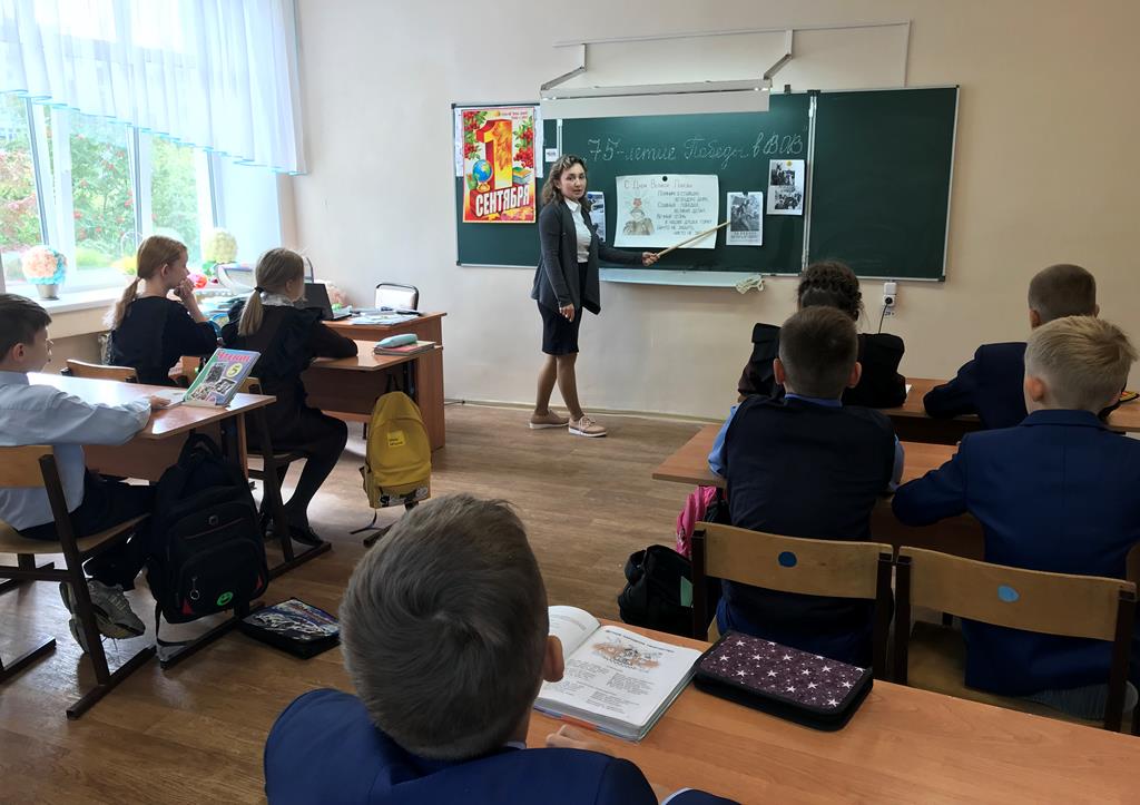 Опубликовано: 03.09.201902.09 2019 г. классными руководителями 5-7 -х классов был проведен Урок Мира на тему: «75-летие Победы в ВОВ». Цель Урока: формирование патриотизма, воспитание чувства гордости за свою Родину на примере героического прошлого дедов и прадедов учащихся, ветеранов и участников Великой Отечественной войны, на примере трудового подвига их родных и земляков в суровое военное время; воспитание чувства ответственности и долга перед Родиной, готовности к защите Отечества.