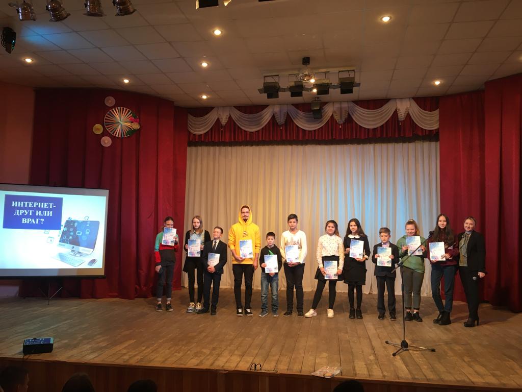 Опубликовано: 12.11.201912 ноября учащиеся 5-7 классов под руководством педагога Брюховой С.С. приняли участие в городской программе "Имею право", где для них была проведена познавательная программа «Интернет - друг или враг?». Учащиеся расширили представления о Законе РФ "Средства массовой информации" №2124-I. Выражаем благодарность организаторам мероприятия.