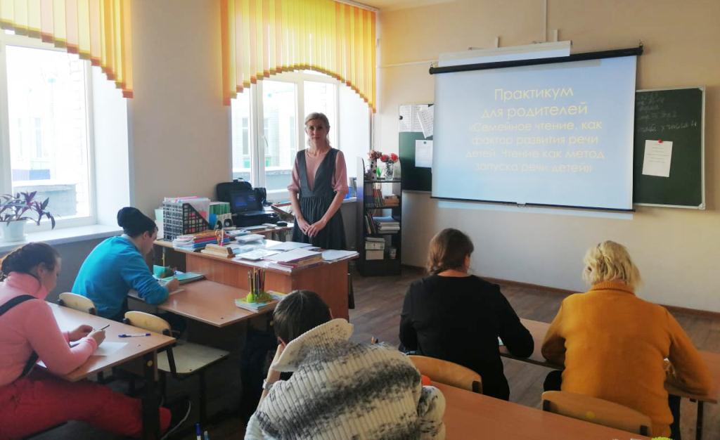 Опубликовано: 25.11.2019В рамках декады учителей и воспитателей начальных классов, учителем-логопедом Брюховой С.С. был проведен практикум для родителей «Семейное чтение, как фактор развития речи детей».