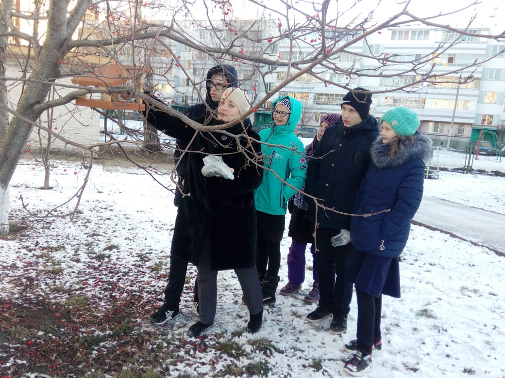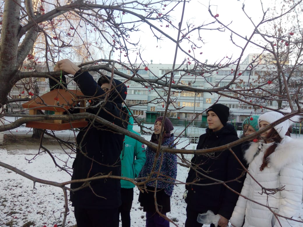 Опубликовано: 29.11.2019Ученики 9а класса под руководством учителя биологии Лобачевой А.Г. повесили кормушки для птиц.