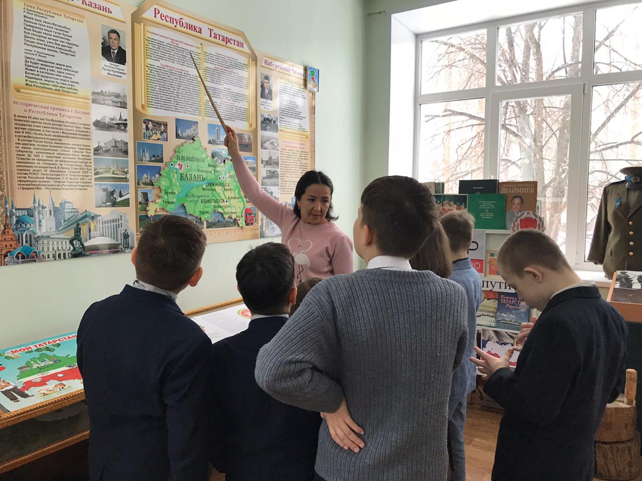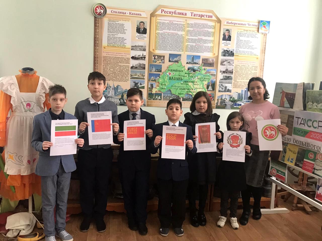 Опубликовано: 30.01.202030.01.2020 Ученики 4а класса посетили экспозицию, посвящённую "100 летию ТАССР" в музее школы. Руководитель музея Тимургалиева Д.А. рассказала об истории возникновения нашей республики. Познакомила с историей государственных символов РТ.