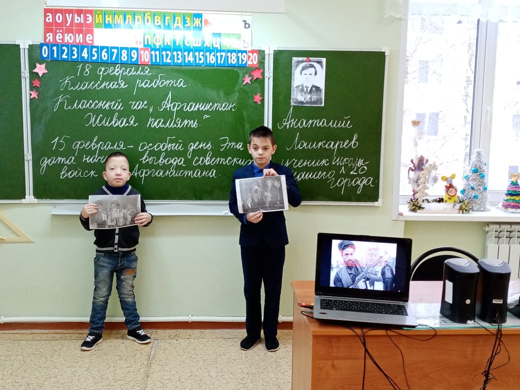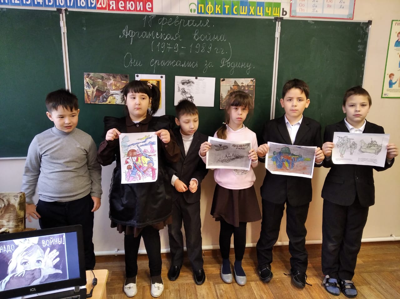 Опубликовано: 18.02.2020Согласно воспитательному плану мероприятий, 18 февраля 2020 года учителями начальных классов был проведён классный час, посвященный выводу Советских войск из Афганистана.