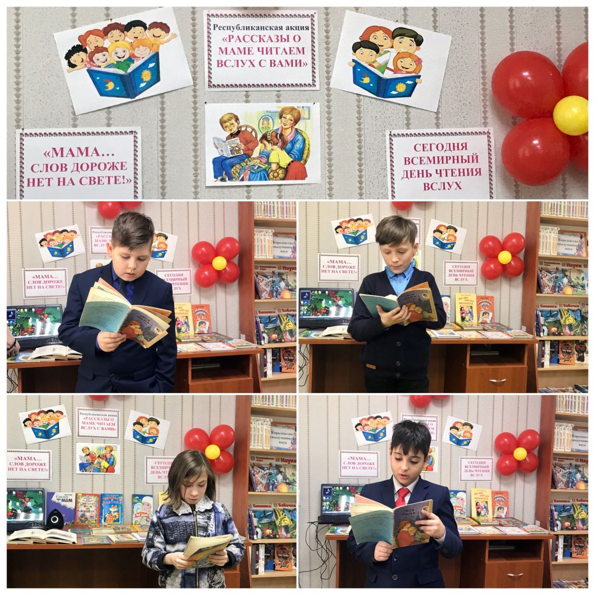 3 марта ученики 4 А класса под руководством педагогов Валиевой Р.Р. и Пищевских Я.А. посетили городскую библиотеку №23, где было проведено мероприятие «Рассказы о маме читаем вслух с вами» в рамках республиканской акции «Чтение вслух». Вниманию учеников была представлена книжная выставка «Слово о матери».