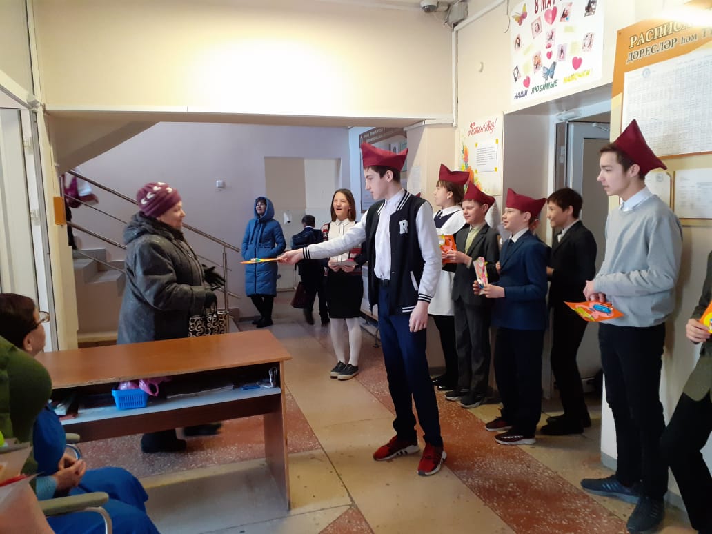 Опубликовано: 06.03.2020Тимуровский отряд "Дружба" проявил свою инициативу и решил поздравить весь женский коллектив набережночелнинской школы 69 С международными женским днём 8 марта! Сами своими руками сделали поздравительную открытку в формате 3D и в преддверии праздника встретили их у входа школы.