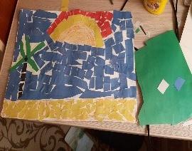 13.04.20. 6 «Б» класс. Чередниченко Валера. «Закат на море» (аппликация).
