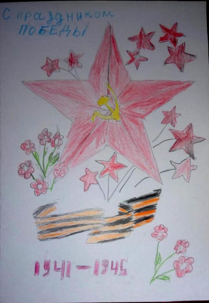 Ученики посмотрели видеофильм «Детям о войне», в котором рассказывается о том, как народ благодаря мужеству, любви к Родине отстоял мир. В завершении мероприятия выполнили практическое задание: нарисовали рисунки, посвященные празднику, и оформили открытки для ветеранов ВОВ.