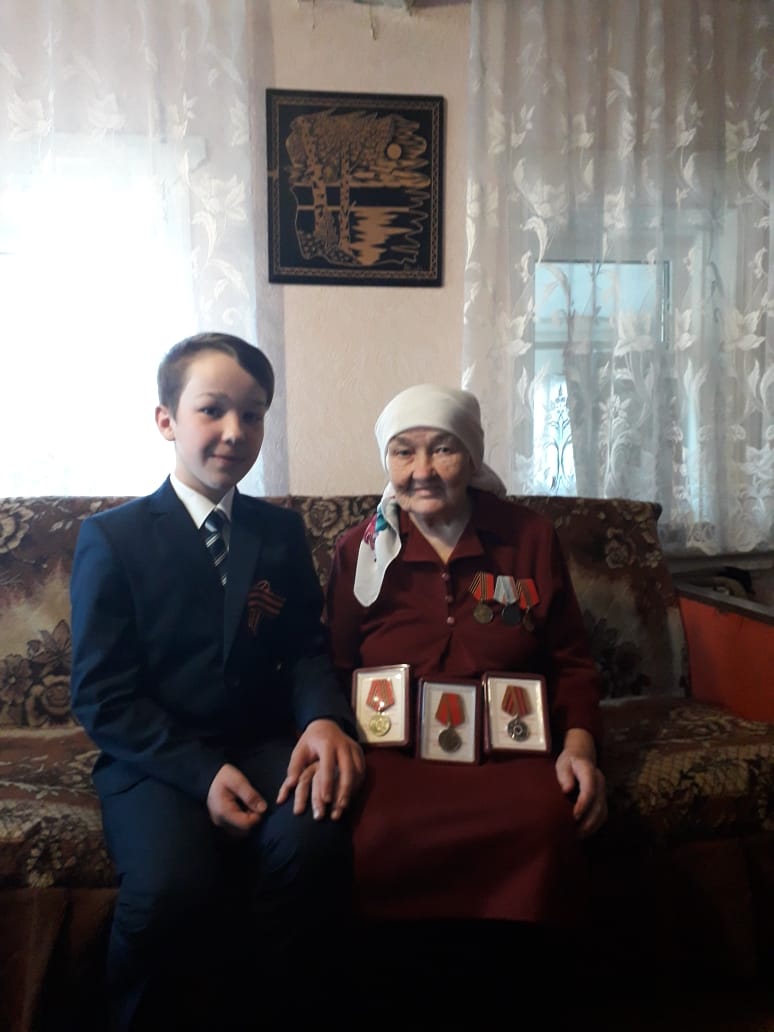 Опубликовано: 03.05.2020Ученик 7Б класса Гениатулин И. поздравил Абдряшеву Евдокию Васильевну, ветерана тыла (1932 г.р.) с наступающим праздником.