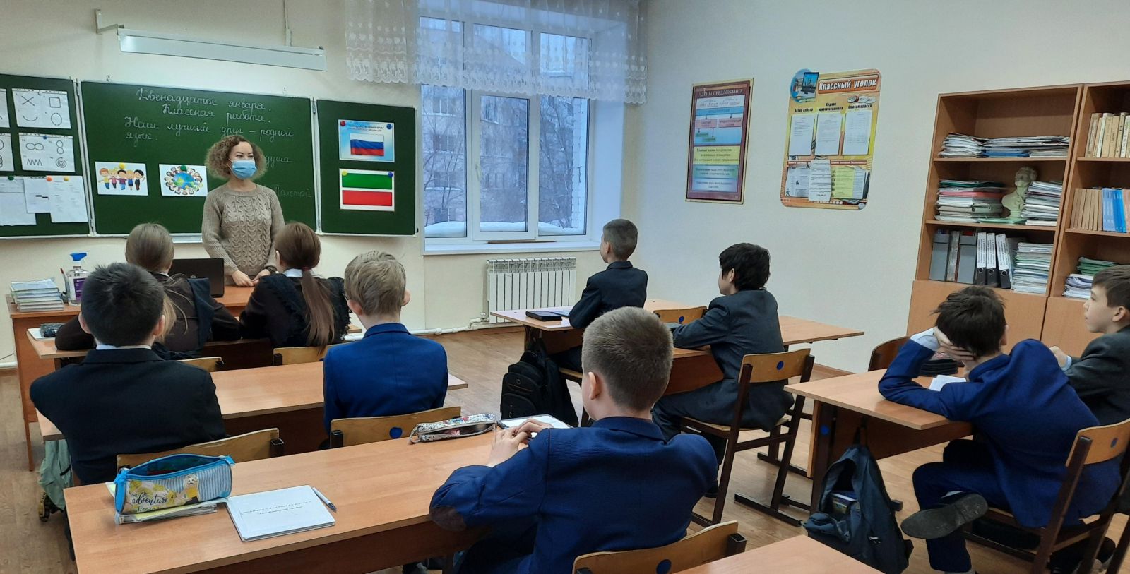 Опубликовано: 12.01.2021Согласно воспитательному плану мероприятий, приуроченных к Году родных языков и народного единства в Республике Татарстан, 12.01.2021г. в 6а классе учителем русского языка и литературы Акбировой Г.Т. был проведён классный час «Наш лучший друг – родной язык!».