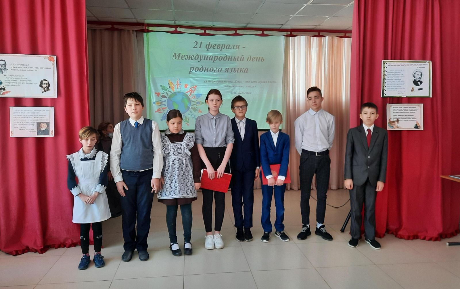 Татарстан Республикасындагы Туган телләр һәм халыклар бердәмлеге елына багышланган тәрбия чаралары планы буенча 2021 нче елның 18 нче февралендә укытучылар Акбирова Г.Т., Мөхәмәтҗанова А.Ә. һәм Брюхова С.С. тарафыннан 5-6 сыйныф укучылары өчен Халыкара туган тел көненә багышланган чара оештырылды. Укучылар туган тел турында яттан шигырьләр сөйләделәр, викторина сорауларына җавап бирделәр, мәкаль-әйтемнәрне тулыландырдылар, канатлы гыйбарәләрнең мәгънәләрен аңлаттылар, сөйләм этикеты кагыйдәләрен үзләштерделәр. Шулай ук укучылар презентация һәм тематик видеоролик карадылар. Музыкаль паузалар вакытында укучылар милли җыр һәм бию башкардылар.