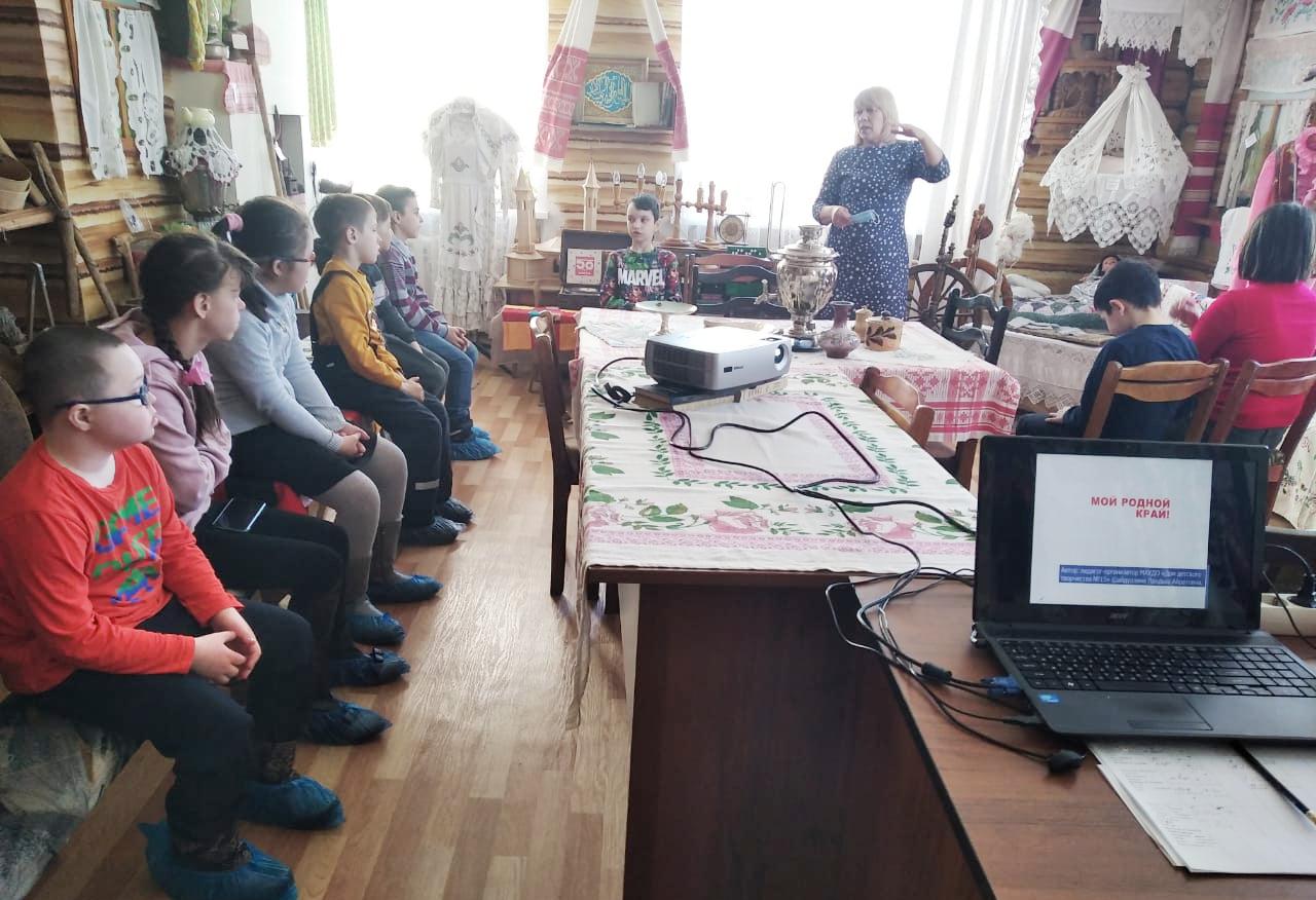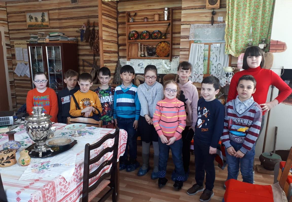 Заведующая отделом национальной культуры Валеева Ф.Р. рассказала о жизни и быте татарского народа. Для детей были представлены элементы национальной одежды, быта и труда, корзинка плетёная из камыша, сапожки женские из натуральной кожи с кожаной мозаикой, украшения татар, домотканые изделия, вышитые полотенца, скатерти, кухонная утварь. Учащиеся получили массу удовольствий.