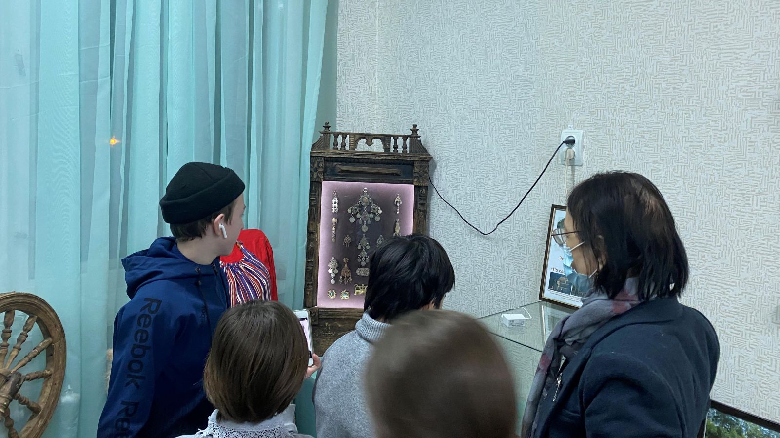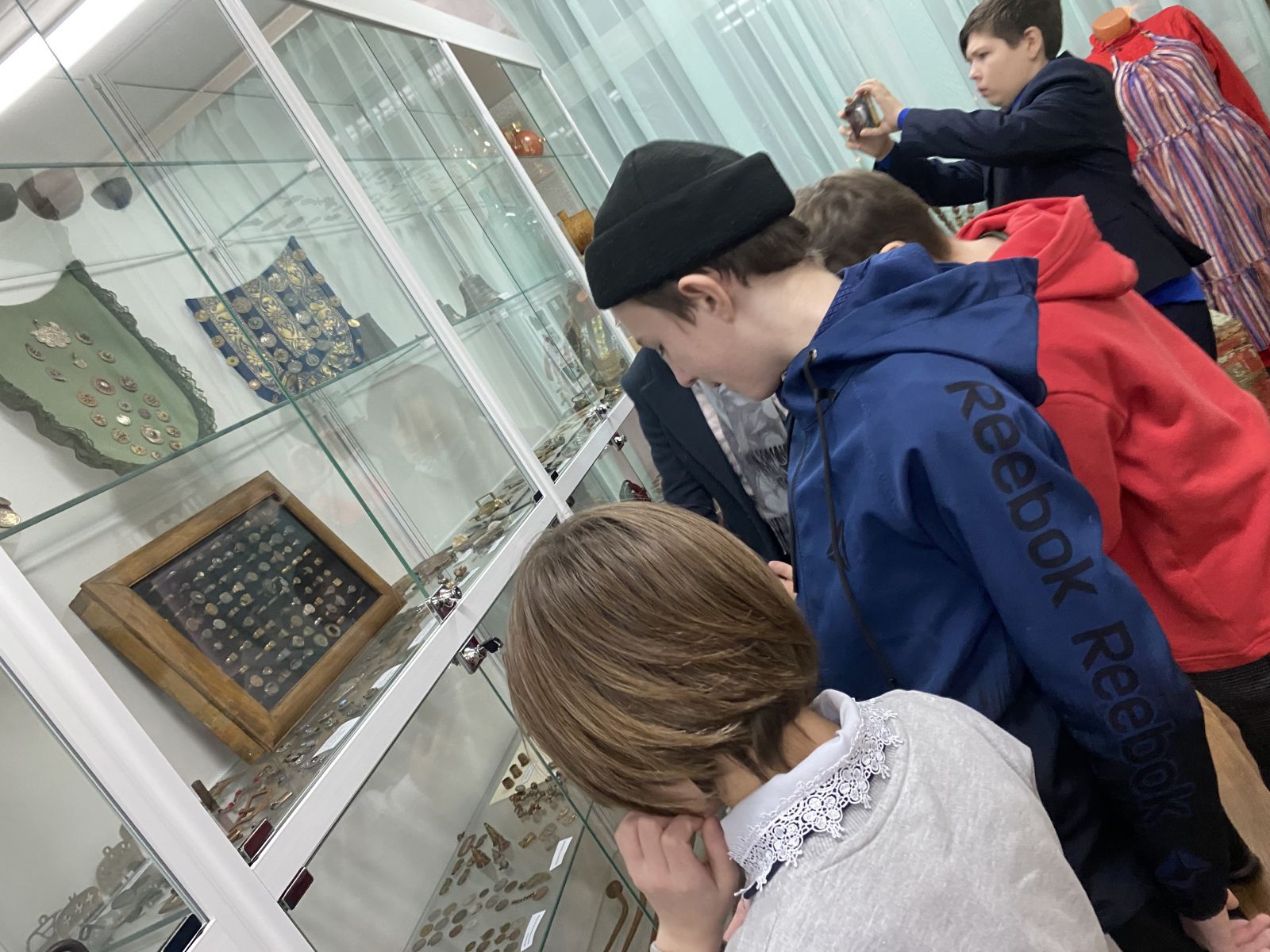 Ученикам провели экскурсию по новой выставке «По следам прошлого». Выставка посвящена этнокультурному развитию, традициям, обычаям финно-угорских народов. Главное направление выставки: воспитание в молодом поколении чувства гордости за деятельность предков, их вклад в мировую сокровищницу отечественной и мировой культуры. Изучение традиционной культуры финно-угорских народов обеспечивается экспонатами, представленными местными коллекционерами. На выставке представлены старинные женские украшения: накосники, серьги, чулпы, браслеты, подвески, декоративные пуговицы, кольца, монисты и жетоны. Отдельно представлены праздничные конские упряжи, бронзовые и медные бляшки, кованые изделия, одежда и предметы быта. Эти уникальные экспонаты помогают нам понять пройденный народами Поволжья путь становления. По этим экспонатам мы понимаем дух народа, его представления о возвышенном и прекрасном.