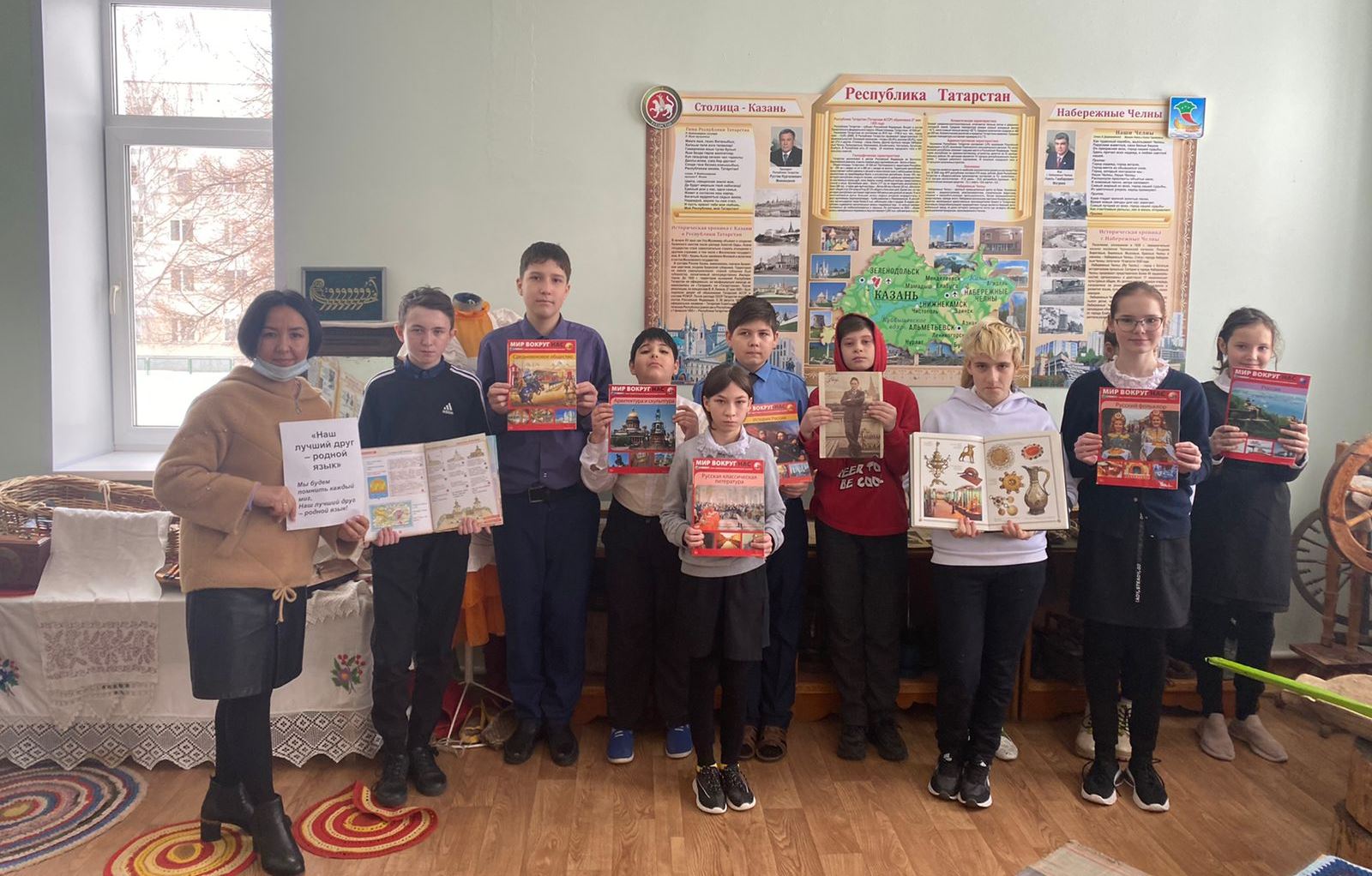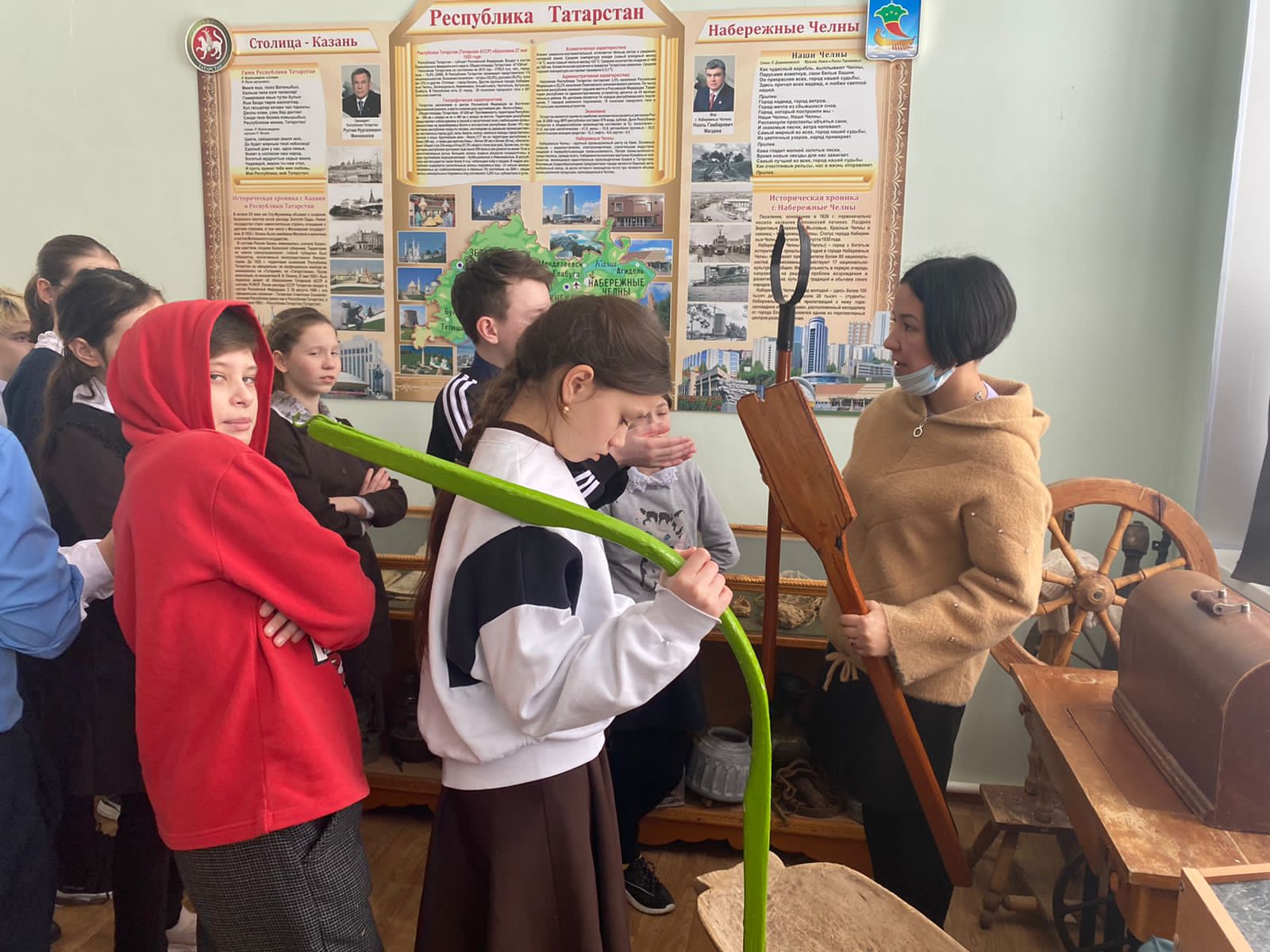 2021 нче елның 21 нче мартында ХалыкараТуган тел коненә багышланган тәрбия чаралары планы уңаеннан Тимургалиева Д. А., Пищевских Я.А. 6а, 6б сыйныф укучылары өчен мәктәп музеенда “Безнең туган як” темасына экскурсия үткәрделэр.