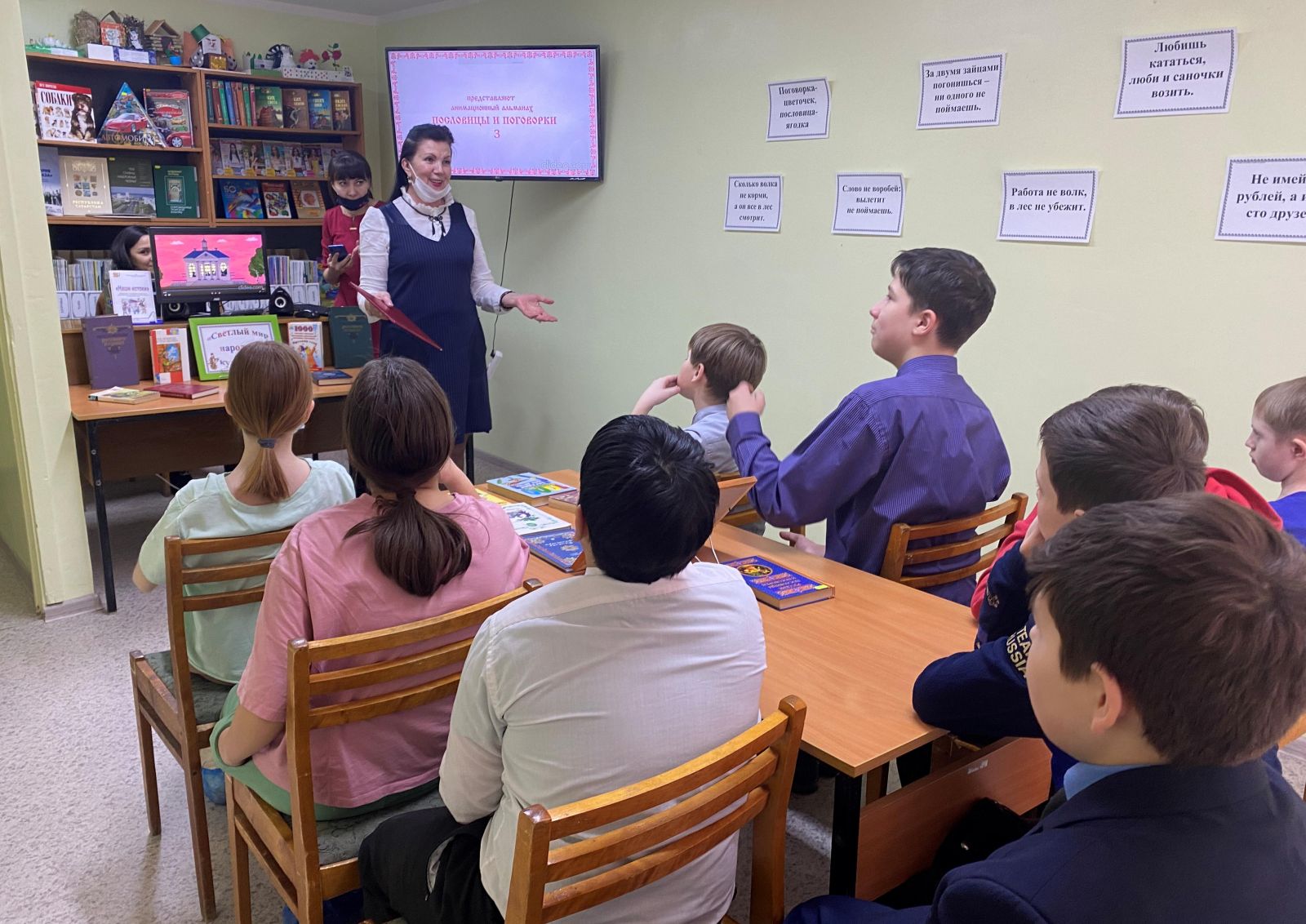 Детский библиотекарь познакомила ребят с происхождением пословиц и поговорок, с творчеством их собирателя В. И. Далем. Дети отгадывали пословицы по картинкам, искали их в прочитанных стихах, вспоминали вторую часть известных пословиц в игре «Доскажи пословицу». Школьники также приняли участие в игре «Угадай пословицу». Игрок от каждой команды показывал пословицу или поговорку игроку противоположной команды жестами и действиями.