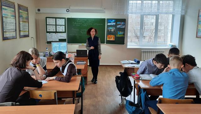 Опубликовано: 21.04.2022В рамках декады МО учителей общеобразовательных дисциплин учителем русского языка и литературы Акбировой Г.Т. был проведён открытый урок русского языка в 7а классе по теме «Повторение изученного материала по теме «Глагол»».