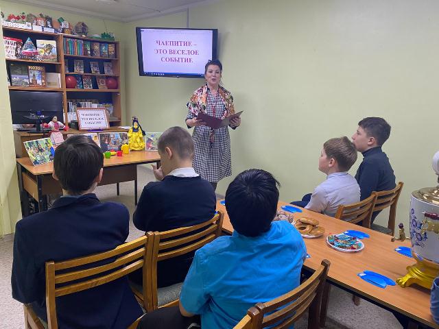 Опубликовано: 20.04.202220 апреля ученики 6а и 6б классов посетили библиотеку - филиал №23, в рамках программы «Наши истоки» к Году народного искусства и нематериального культурного наследия, для учеников прошел познавательный час «Чаепитие – это веселое событие!», о традициях чаепития в России.