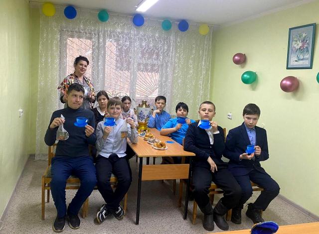 Мероприятие сопровождалось песней о чае «К самовару приглашаем», частушками, видеороликом «Традиции чаепития в России».