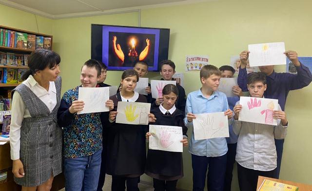 Опубликовано: 06.09.20226 сентября ученики 7а класса под руководством педагога Пищевских Я.А. посетили библиотеку-филиал №23, в котором прошел час памяти «Свеча памяти», в рамках Дня солидарности в борьбе с терроризмом.