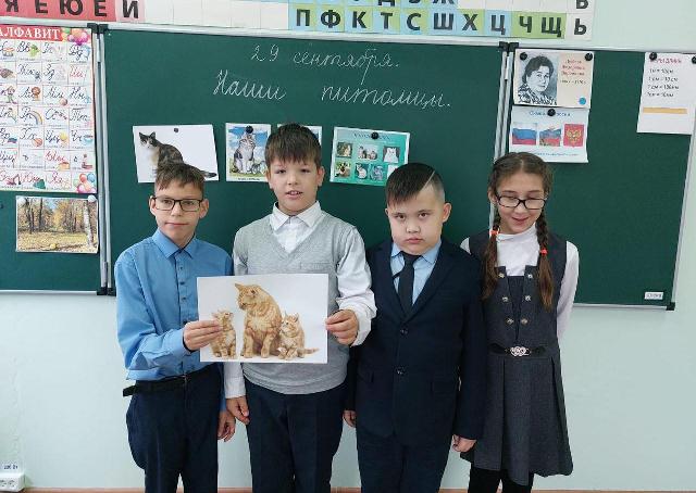 Урок был проведён по теме: «Наши питомцы» (правила ответственного хозяина). У 70% ребят из класса дома проживает домашний питомец. Было интересно послушать, с какой любовью дети рассказывали о своих любимцах. Домашние питомцы дарят ребёнку уникальную возможность почувствовать себя взрослыми и сильными, теми, кто сможет накормить, приласкать, защитить…