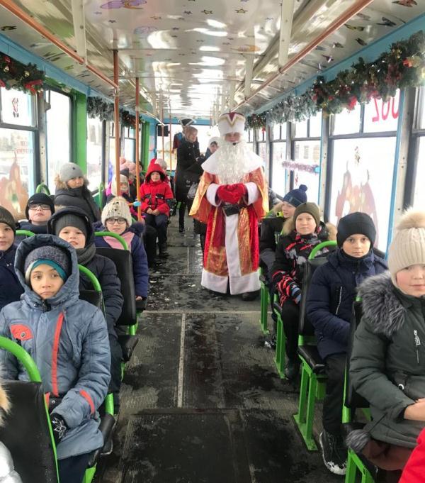 Опубликовано: 26.12.202226.12.2022 ученики 3, 4-х классов вместе с учителями побывали в Новогоднем трамвае. Экскурсия вокруг города была проведена благодаря спонсорской помощи Рыжковой Оксаны Евгеньевны. Детям очень интересно и доступно рассказали об истории праздника Новый год, истории возникновения города Набережные Челны. Дед Мороз и Пётр I провели различные конкурсы и наградили учащихся сладкими призами. Все остались очень довольны.