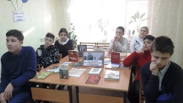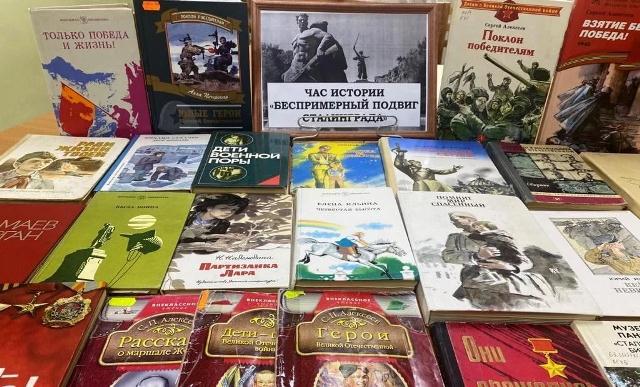 В этот день ребят ждала книжная выставка «Сталинград или о величие бессмертного подвига».