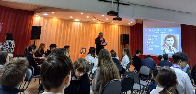 Опубликовано: 09.02.20239 февраля 2023 года ученики 8б класса вместе с педагогом Галялтдиновой Г.Ф. участвовали в познавательной викторине для школьников «Умирая, не умрет герой», в честь 117-летия татарского поэта Мусы Джалиля.