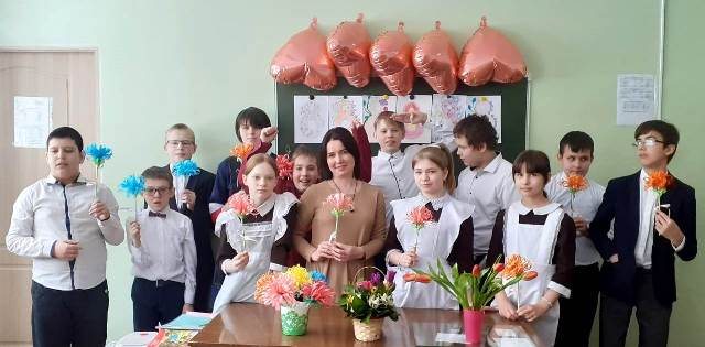 Опубликовано: 07.03.2023Учащиеся 6а класса под руководством классного руководителя Хамидуллиной Л.Р. изготовили подарки для мам и бабушек, провели чаепитие и поздравили девочек класса.