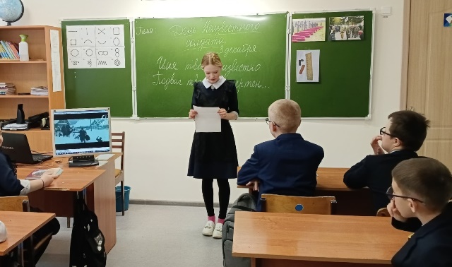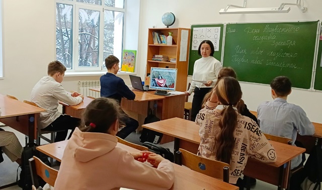 Опубликовано: 04.12.20234 декабря 2023г. под руководством учителя истории Тимургалиевой Д.А. в школе прошли уроки Мужества, посвященные памяти, воинской доблести и бессмертного подвига воинов, погибших в боевых действиях, чьи имена остались неизвестными.