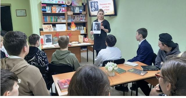 Опубликовано: 08.05.202407.05.24 учащиеся 8а, 8б классов под руководством классных руководителей Тимургалиевой Д.А. и Пищевских Я.А. посетили библиотеку №23, где для них было проведено мероприятие «Глазами тех, кто был в бою».