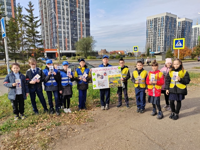 Опубликовано: 10.10.2025В рамках городской акции "Будь на стороне Света" 10.10.2025 г. учащиеся 4а и 4б классов, под руководством Бесединой Е.В. и Нигметзяновой Г.Р. выходили на рейд к ТЦ "Агава", по Сармановскому тракту, с целью раздачи листовок "Стань заметней на дороге!". Ребята призывали прохожих носить фликеры (световозвращающие элементы), соблюдать и не нарушать ПДД. Раздавали агитационный материал.