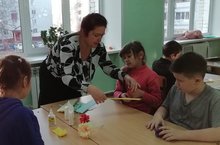 30.10.2019г. воспитатель Софронова Е. В. провела в 3Б классе мастер-класс "Осенние цветы".