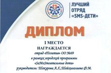 19.05.2022 г. Отряд "Позитив" (руководители: Шакурова Айсулу Хамитовна и Шайхигалиева Фания Мизхатовна) был признан "Самым Лучшим Отрядом "SaMoSтоятельные Дети" города Набережные Челны и награждён Дипломом за 1 место на муниципальном этапе конкурса.