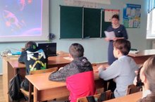 Согласно воспитательному плану в 8б классе был проведён урок, посвящённый 60-летию покорения космоса.