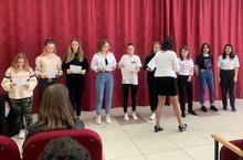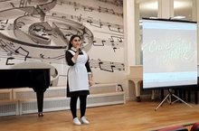 7.04 под руководством Миннегалиевой Э.С. ученица 9 класса Мнацаканян Тина приняла участие в городском конкурсе фронтовой песни "Споёмте, друзья!"