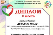 Ученик 3б класса Арсланов Ильяс под руководством педагога Нигметзяновой Г.Р. участвовал в городском онлайн – конкурсе рисунков «С любовью к родному краю» в номинации «В национальном костюме – история народа», организованном МБУ «Централизованная библиотечная система» г. Набережные Челны.