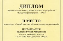 Педагоги школы Валиева Р.Р., Громова Е.Ю., Мурашова В.И., Гаевой А.Г., Гатин Р.Ш., Хамидуллина Л.Р., Шайхигалиева Ф.М., Широв С.Г. приняли активное участие в муниципальном конкурсе методических разработок «Кладовая развлечений-2021».