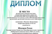 Ученик 8а класса Шакиров Роман под руководством Миннегалиевой Э.С. принял участие в Региональном конкурс-выставке декоративно-прикладного творчества «Раскрасим мир радугой красок» для обучающихся 1-11 классов и детей с ОВЗ и занял призовое место.