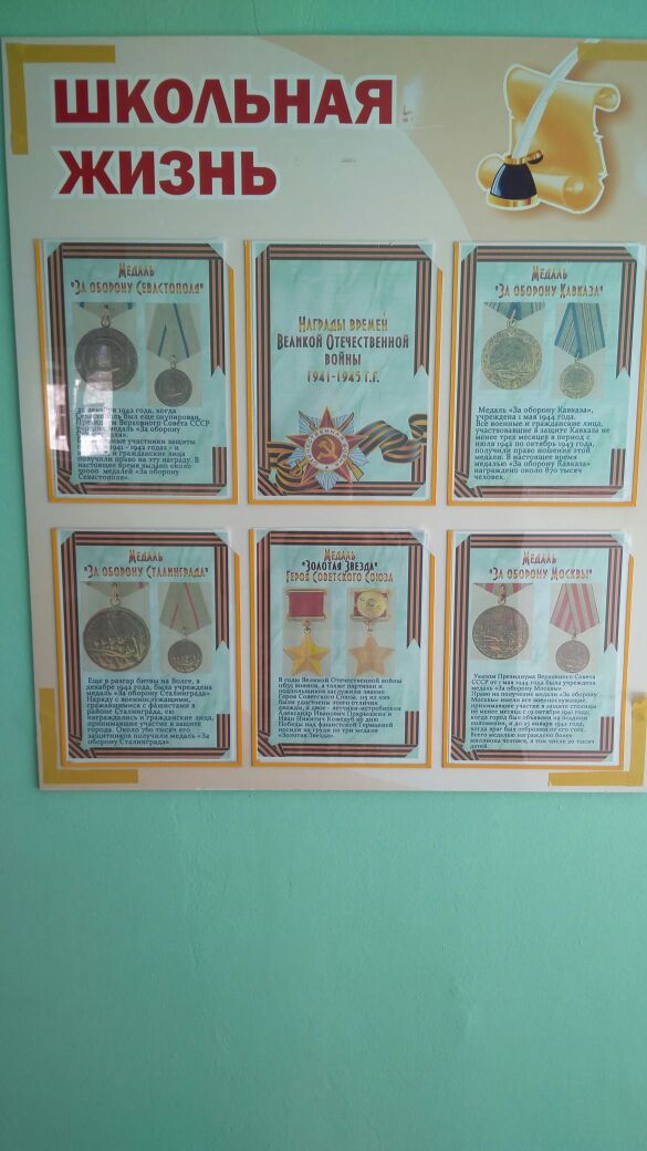 В школе завершилась декада посвященная празднованию Дня Победы. Во всех классах проходили классные часы о Великой Отечественной войне, конкурс Боевых листков, выставка наград Великой Отечественной войны. А также выставка детских рисунков и галерея памяти героям ВОВ.