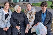 1 октября учащиеся 12 класса посетили в рамках Декады старшего поколения 90-летнюю Ахмадуллину Гульсум Абдураковну и передали продукты, собранные учениками школы.